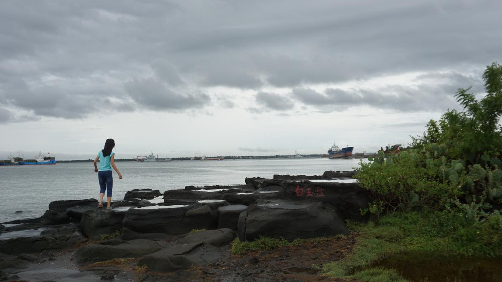 从儋州乘车到洋浦,再打了摩的来到一个村边的海滩,一番折腾为的就是看这里的千年古盐田。