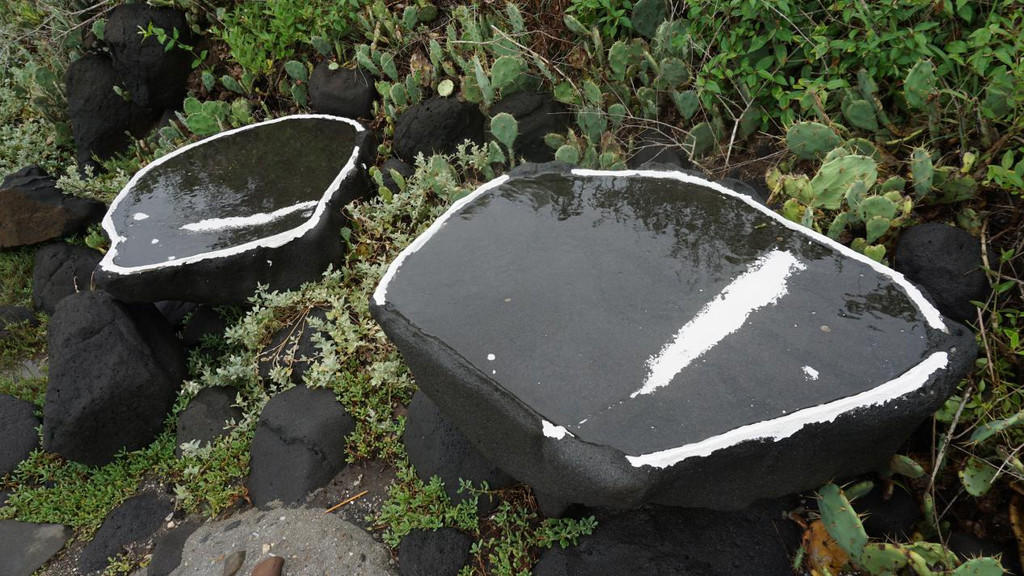 这些用黑色火山岩凿成的盐槽像是磨墨的砚台,使用了上千年,还可以看到被修补的痕迹。