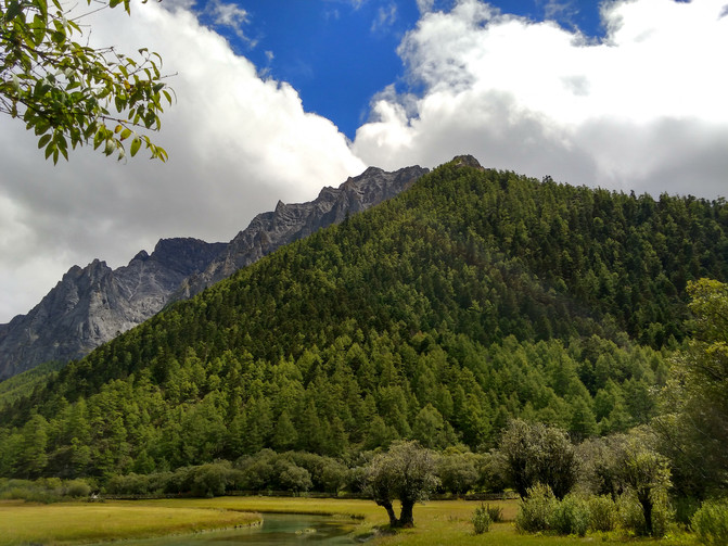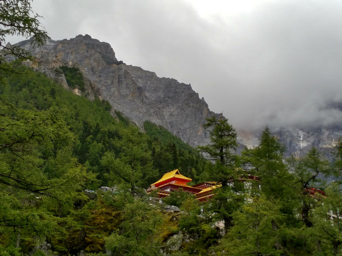 冲古寺是观赏三座神山必经之地,日落景色很迷人,寺前有一个小草原,即冲古草甸。