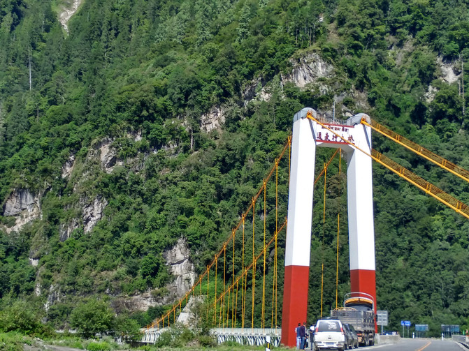 开过烂路后,心态调整得特好。芒康县城里的道路也不好,出城又是烂路一段,但与昨天傍晚的路况有天壤之别。翻越拉乌山(海拔4376米),行驶在澜沧江峡谷中,过澜沧江大桥。