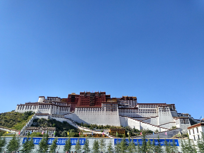 拉萨的白天真是长!早上8点多已经艳阳高照,晚上9点钟天色依然未暗。从我们住的酒店到布宫广场,走路只要十几分钟。