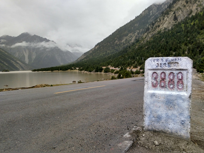 雅安真是名符其实的雨城,昨晚就开始下雨,一直未停。今天我们踏上了川藏线,真正意义上的中国景观大道G318。出雅安城区后一路上都在下雨,双向通行的318国道很湿滑,但车子不是很多。很快到了天全县,期待中的烂路终于出现了,由于地基条件差,重型卡车多,气候也比较极端,修路就成了只有开始没有结束的工作,车祸和堵车也是常事。