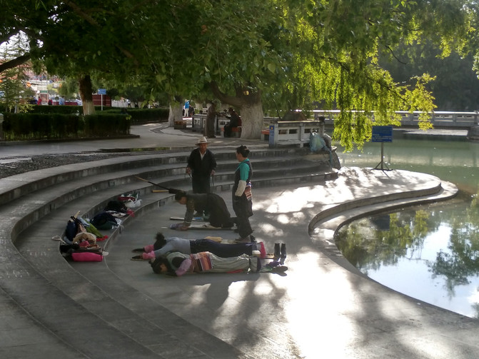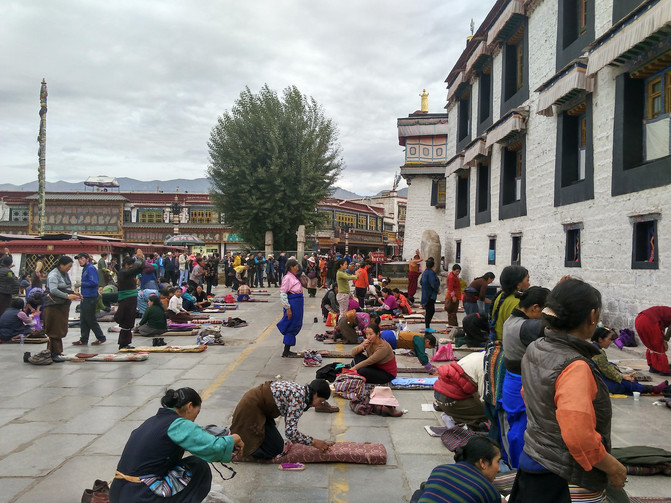 每天清晨天未亮就有大批藏民信徒磕长头,他们在这一个寺就要磕11万个,这对任何人都是挑战。