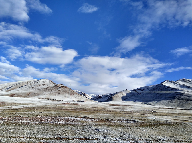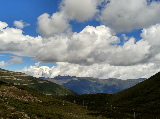 一天内翻越了几座大山垭口,海拔都在4500米以上。大雪山近在咫尺,白雪就在脚下,蓝天通透、白云如絮、阳光明媚、冰雹突袭,气候变化多端,景色变化多样。兴奋了无数次,感动了无数次,G318真的是一条绝美的景观大道。