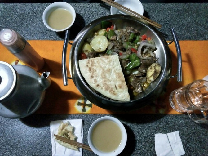 我们住宿在索波藏家庄,老板是个叫拉姆的藏家女孩。晚餐吃的藏餐叫作“牛肉盖被”,喝着酥油茶,再品尝一点青稞酒,过上了真正的藏民生活。茶足饭饱稍歇片刻后,洗浴一番,床上开着电热毯,上床暖暖的,感觉很不错。视频聊会天,睡前一杯牛奶,悠哉悠哉,好梦一场。