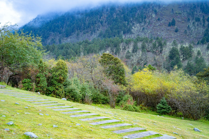 这里距离稻城县城还很远,自然风光占据主导。远离了人世的喧嚣,你会发现世界原来可以这么安静,可以听到风拂过树叶、拂过草尖的声音。在柔软的草地上漫步,让人不禁回想起小时候,会有在草地上打滚的冲动。到了这里才会发现,人类所有的语言描述,都不及这里的美的万分之一。
