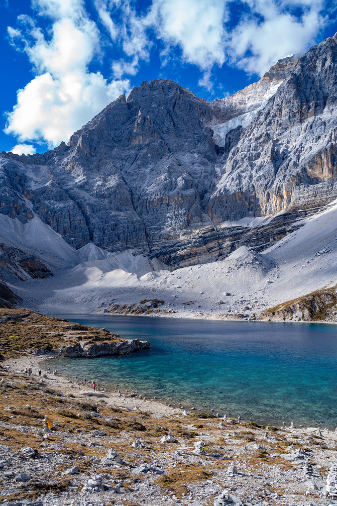 而镶嵌在山间的五色海,会更加的幽蓝,像是能一直被吸引着望进湖底深处,让你体会生命如流水一般千变万化。