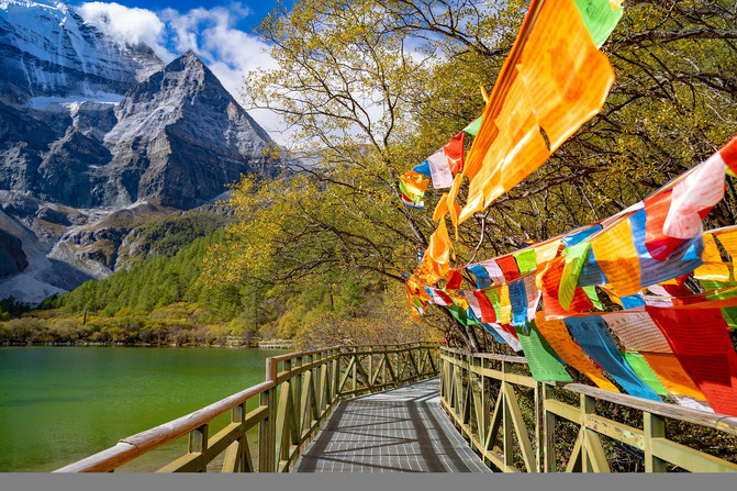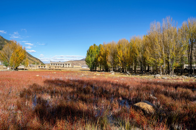 每当10月来临的时候,新都桥也迎来了它最烂漫的季节,阳光折射在大地上,山峦被阳光染上一层金色。在晨曦中欣赏景色如画的小桥流水人家,在落日中体会浓郁的高原藏式民居的藏家风情。