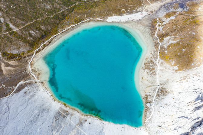 在藏族的文化里,几乎每一处山水都会带有传说的色彩。牛奶湖周边的这圈乳白,有传说颜色愈白,预示着未来愈会风调雨顺、五谷丰登。