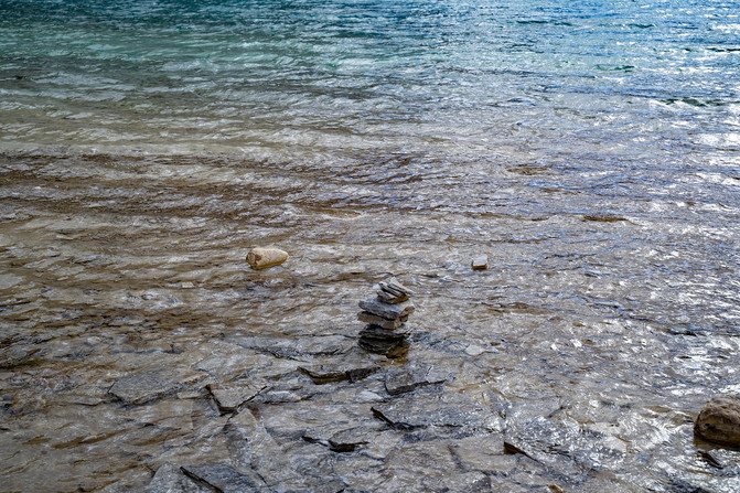 此时阳光正好,湖水清透,湖底的植物和湖水会在阳光的照射下呈现出不同的光芒,像一幅刚画好的油画,渐变过渡却又有着微妙的变化。