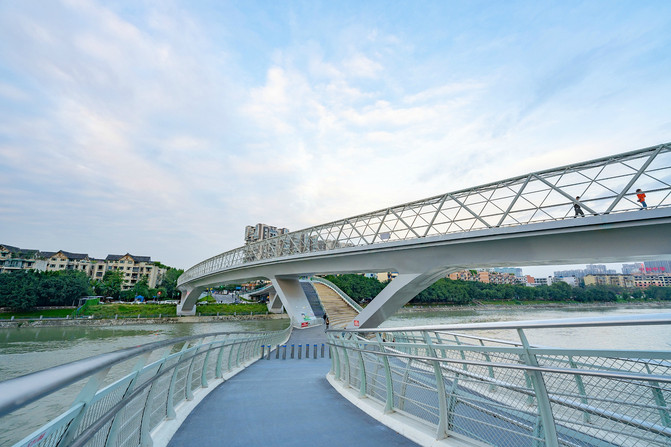 这样是一座充满魔幻色彩的人行桥,一走进这里,就会让人感到“现代感、几何感、未来感”,酷炫的桥身与锦江河畔相辅相成。