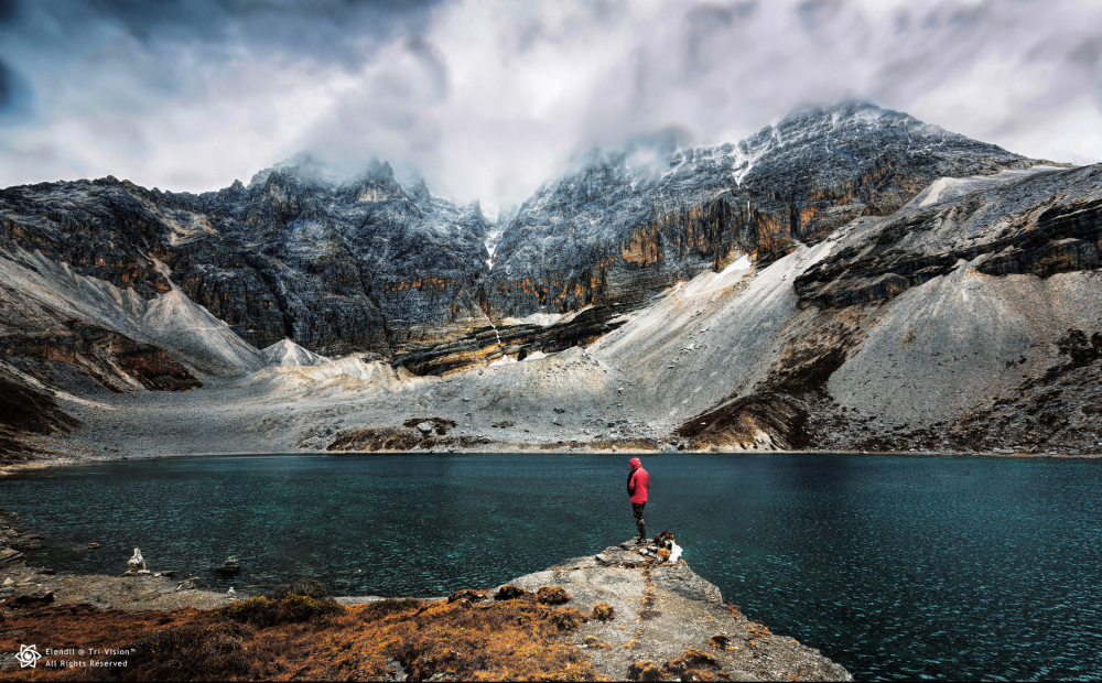 俄初山,在藏语里是“闪光之山”的意思,地处亚丁景区以北,距香格里拉乡25公里,海拔5146米,它挺拔巍峨却不失俊俏,像一位端坐云端的美貌仙子,北部为最深达1200米的俄初峡谷,承托着地势缓和的美丽小山村,南部为高山峡谷区和东义河。