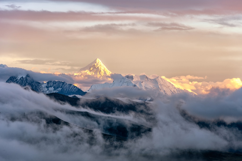 作为摄影师的我们,远远地看着他就好,不奢望可以征服它。高原天气喜怒无常,阴晴不定能看见主峰的机会少之又少,康定机场这个位置是最容易看到主峰的地方,而且条件相对最好,所以自驾的朋友们如果在翻越折多山的时候遇到好天气,一定记得来康定机场附近看看。