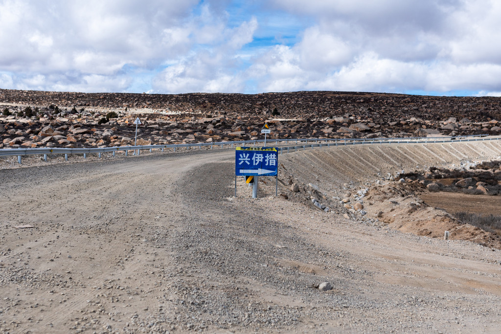 在227主路上有一个前往海子山的岔路口,进了岔路没多久,原本的硬化路面就变成了这样的土路,突然前方出现了一个小的指示牌,写着兴伊措,就冲这个名和这条路,开吧,车本来就是用来越野的。