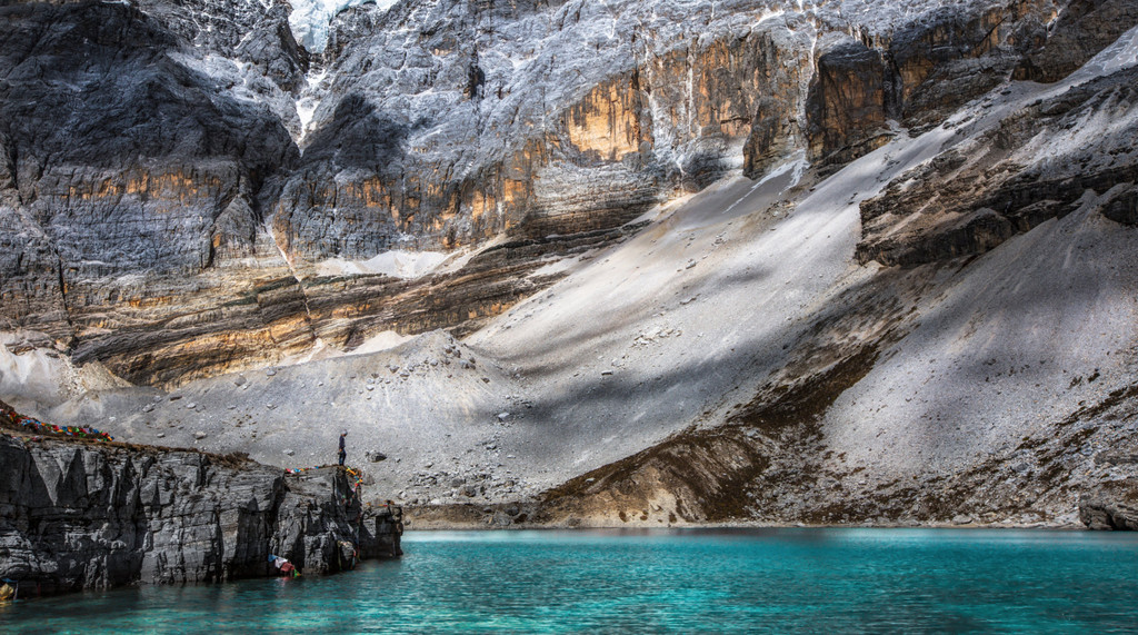 说句题外话,来稻城亚丁,一定要爬上五色海和牛奶海中间的山脊,虽然海拔有4800米,但是当你爬上去后,看到的完全不一样的景色。