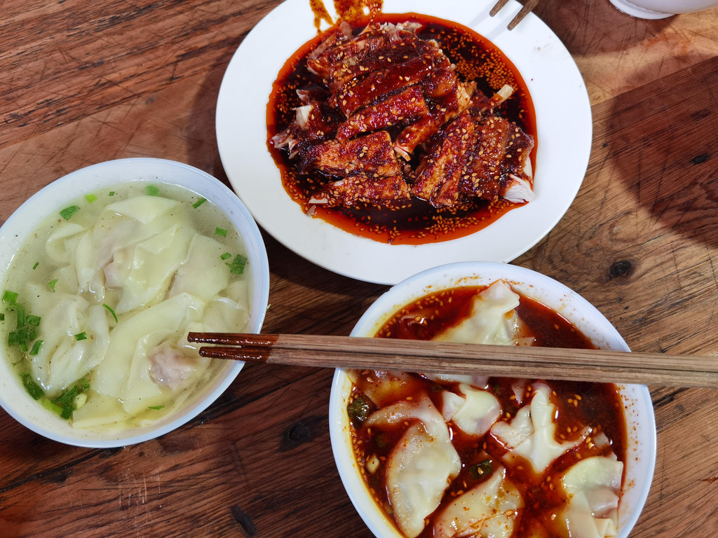 从成都到天全不到180公里,全程高速,算堵车及限速什么的,两个小时左右即可到达。也不知道从什么时候开始,这一碗抄手,一份椒麻鸡,成了进藏游客的必选项目,有一种走过路过不能错过的感受。抄手一碗十几块,有一两、二两、三两可以选择。椒麻鸡一斤90元,最低选配50元起。