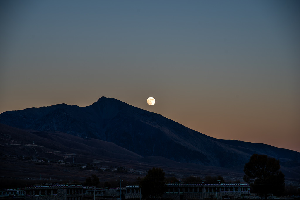 返程的时候,我们继续住在了新都桥,当我们吃完牦牛肉火锅,无意中抬头一看,好大的月亮啊,顿时,心中升起了想要拍照的念头,星空是每个风光摄影师都不会错过的题材,但月明星稀的道理我们也是懂一点的,虽然拍不了银河大片,但是这么通透的晚上怎么能错过。