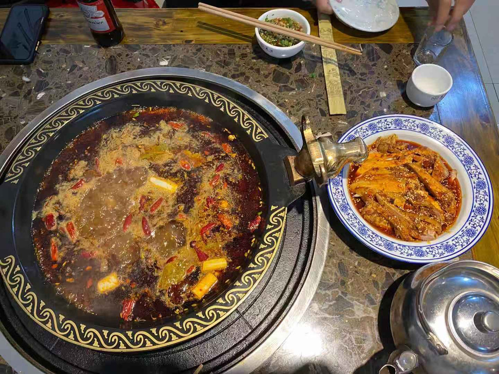 一碗清汤,一碗红汤,一盘肉,足以让我们大呼过瘾。