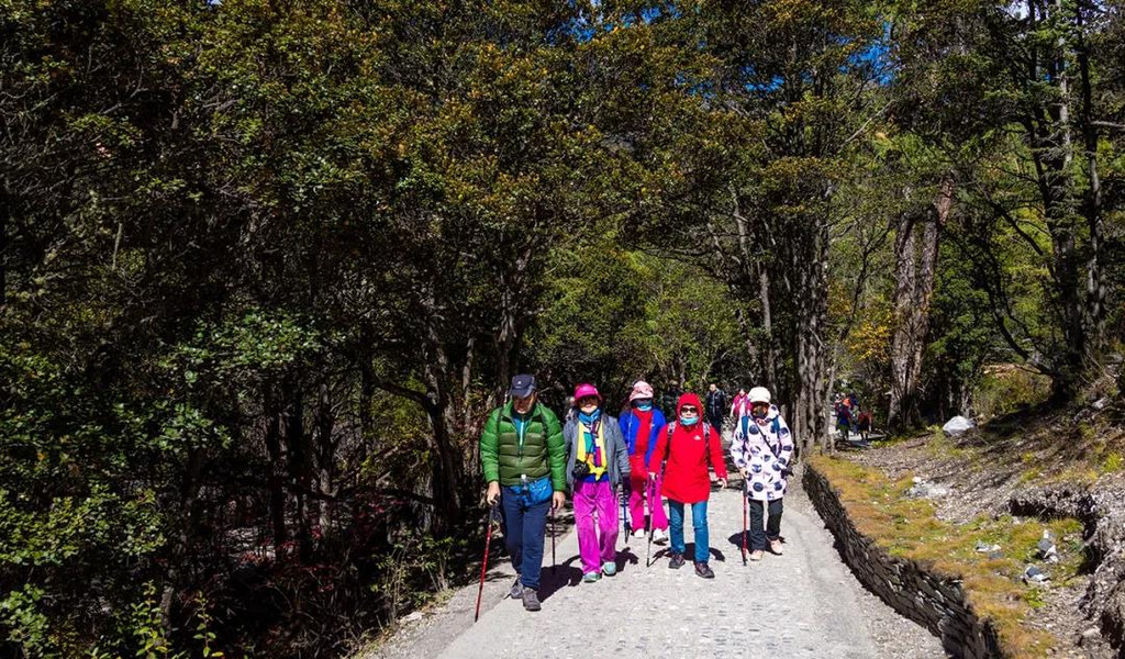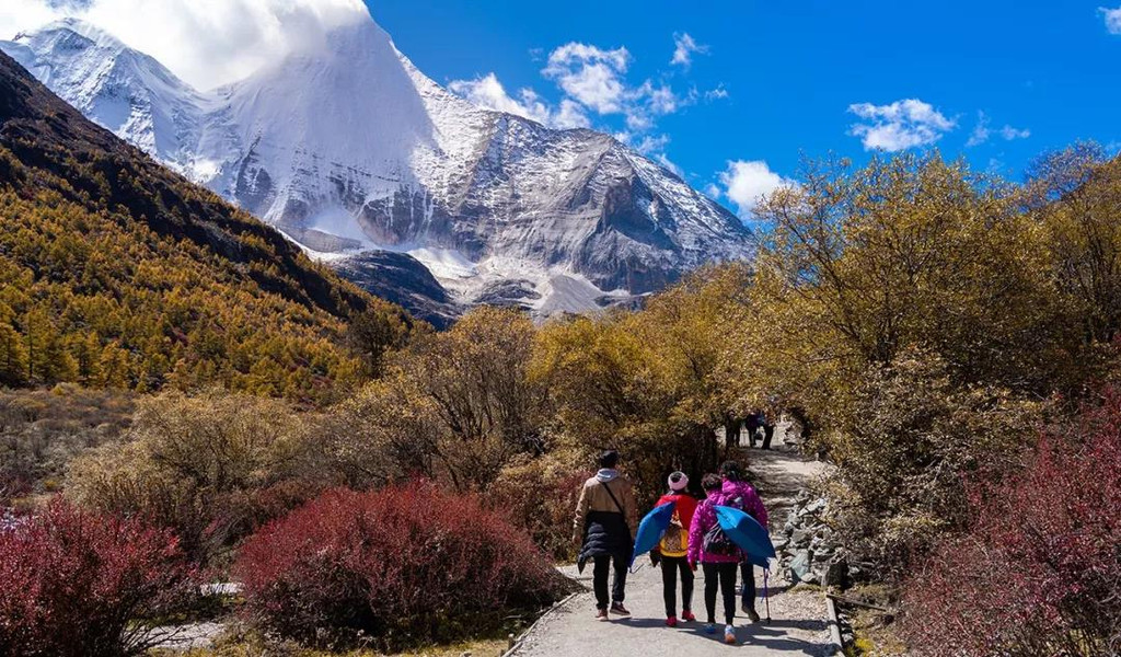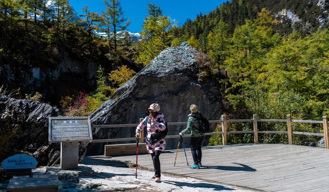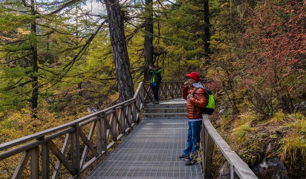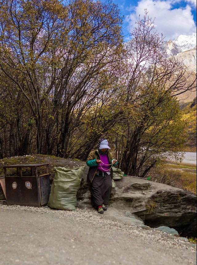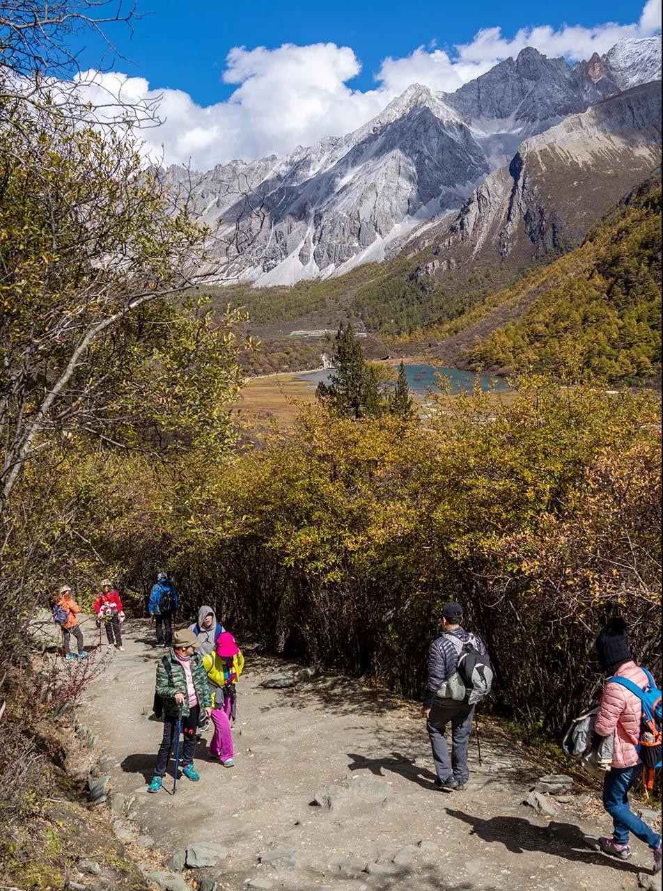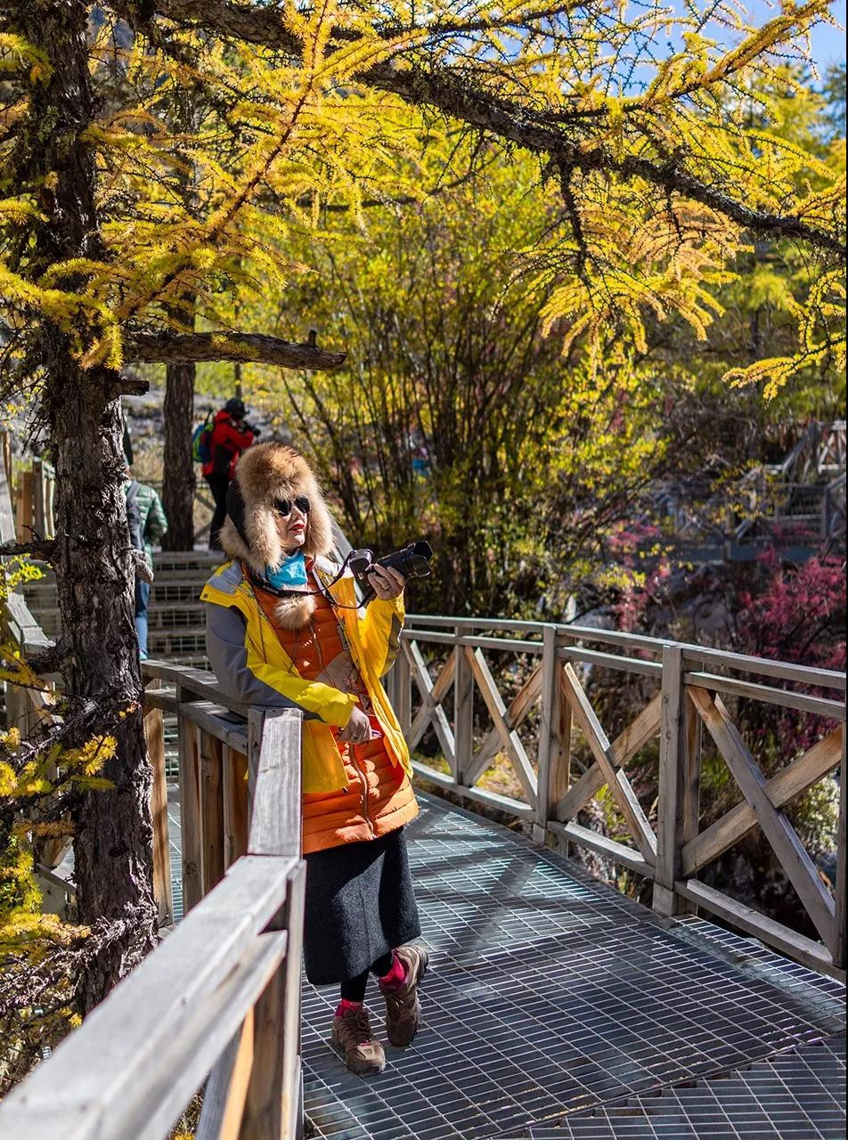 第二天晨起,我们再次乘坐观光车进入景区,今天选择了一条彩林密布的小道赏景,也正式开启了我们亚丁短线的旅行,值得庆幸的是,今天的天气一如既往的让人悦目而赏心。