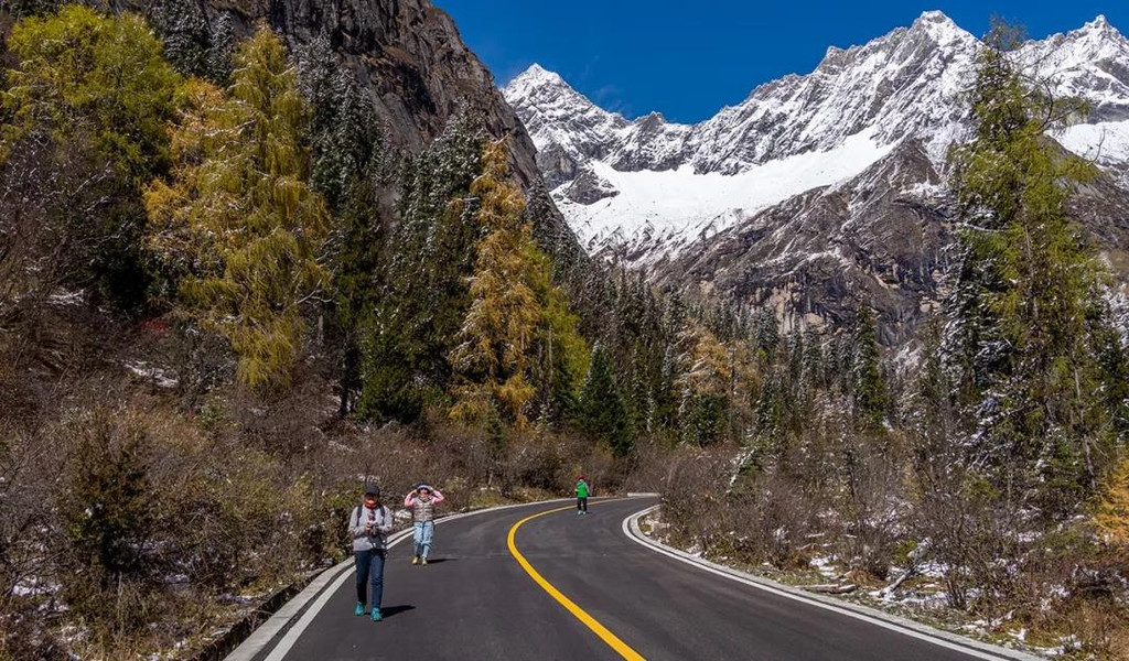 而“天路十八弯”就是必须要停车打卡的一个点,因为这里除了有蜿蜒的道路,也能在天气最好的时候,遥望到蜀山之王——贡嘎山。(我们10月17号出发的亚丁团,就在这里拍到了贡嘎,请期待该团的游记回顾)