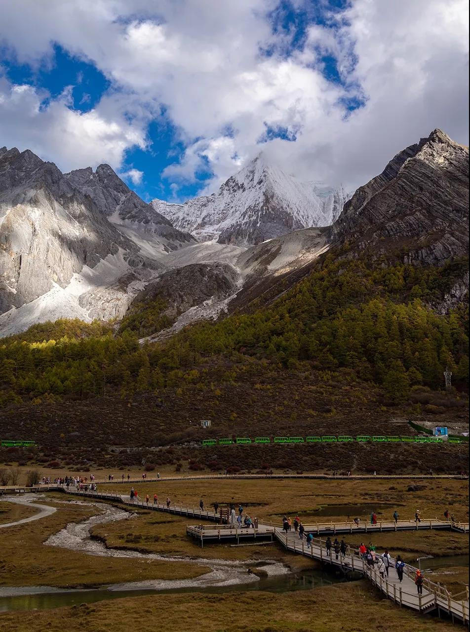 其实我如果不用上自己的手指,那我一定不记得我今年已是第几次来到圣地亚丁,但必须要承认的是,这确实是我今年第一次在观光车上就能遥望到神山仙乃日,且还是如此的万里无云的状态下,我也像那些第一次来到这里的人一样,在观光车上近乎已经到了惊呼的状态,而在近一个小时的车程之后,今天我直接为大家选择了长线,去往亚丁深处。