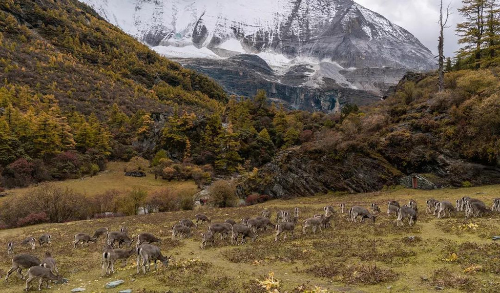 在亚丁景区深处,其实有着各种生长于此的野生动物,岩羊便是这里的熟客。
