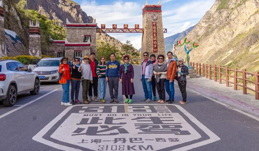 直至中午时分,我们来到世界高城理塘,本应在这里就与318国道分路而行,但为了让大家在城前牌坊打卡,也为了一个特殊的安排,所以特意沿着318国道多走了一段。
