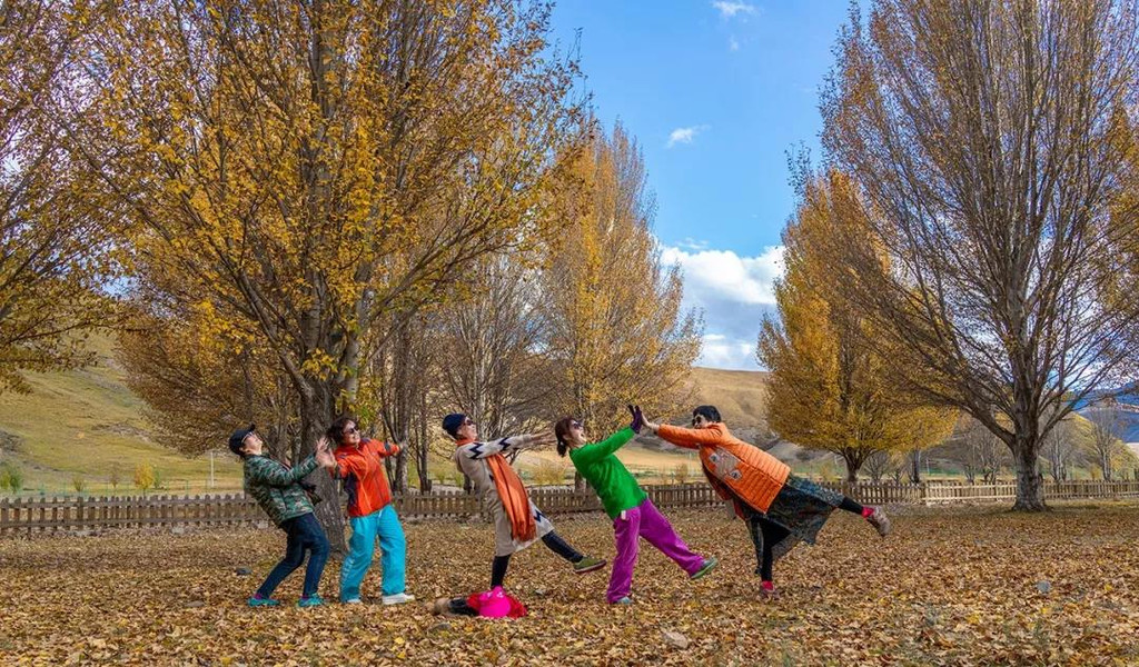 邂逅一片金黄彩林并留下自己的笑语