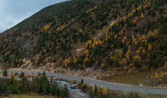 每年十月,从理塘通往稻城的这一条山路,都会变成一条多彩的路,金色的彩林成排的站在道路的两旁,夹道欢迎每一个远道而来的客人。