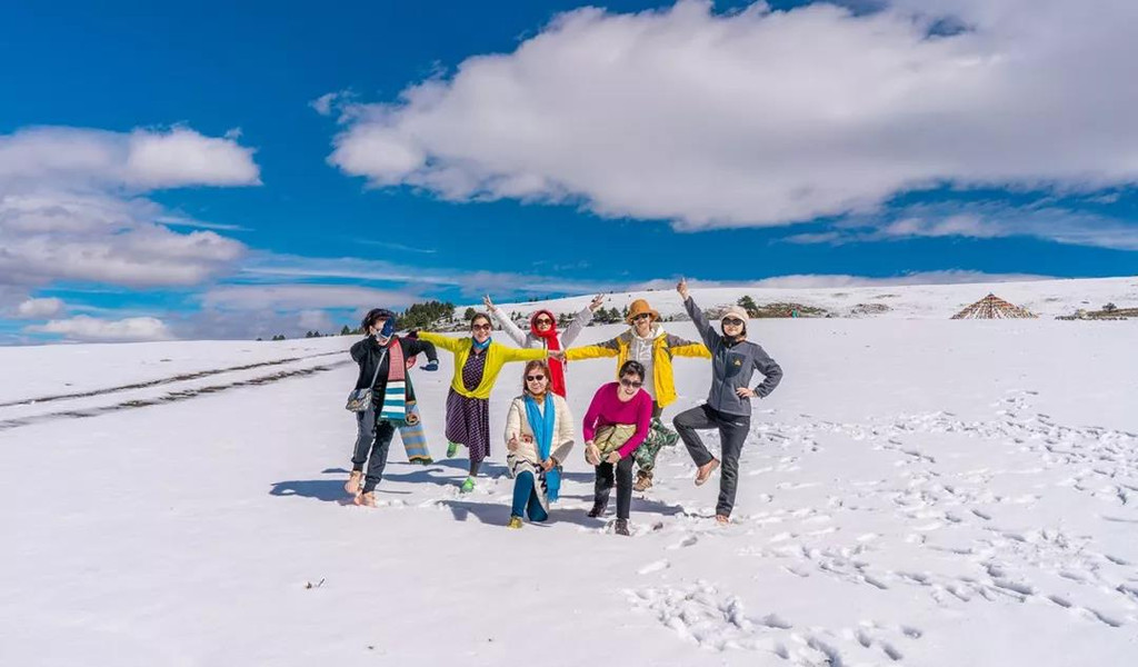 是的,每一个看到这里的小伙伴一定要相信我,大部分广东人看到雪真的会疯的,是高兴得发疯的,瞬间再次忘了海拔,各种嗨皮起来,完全不受控制。