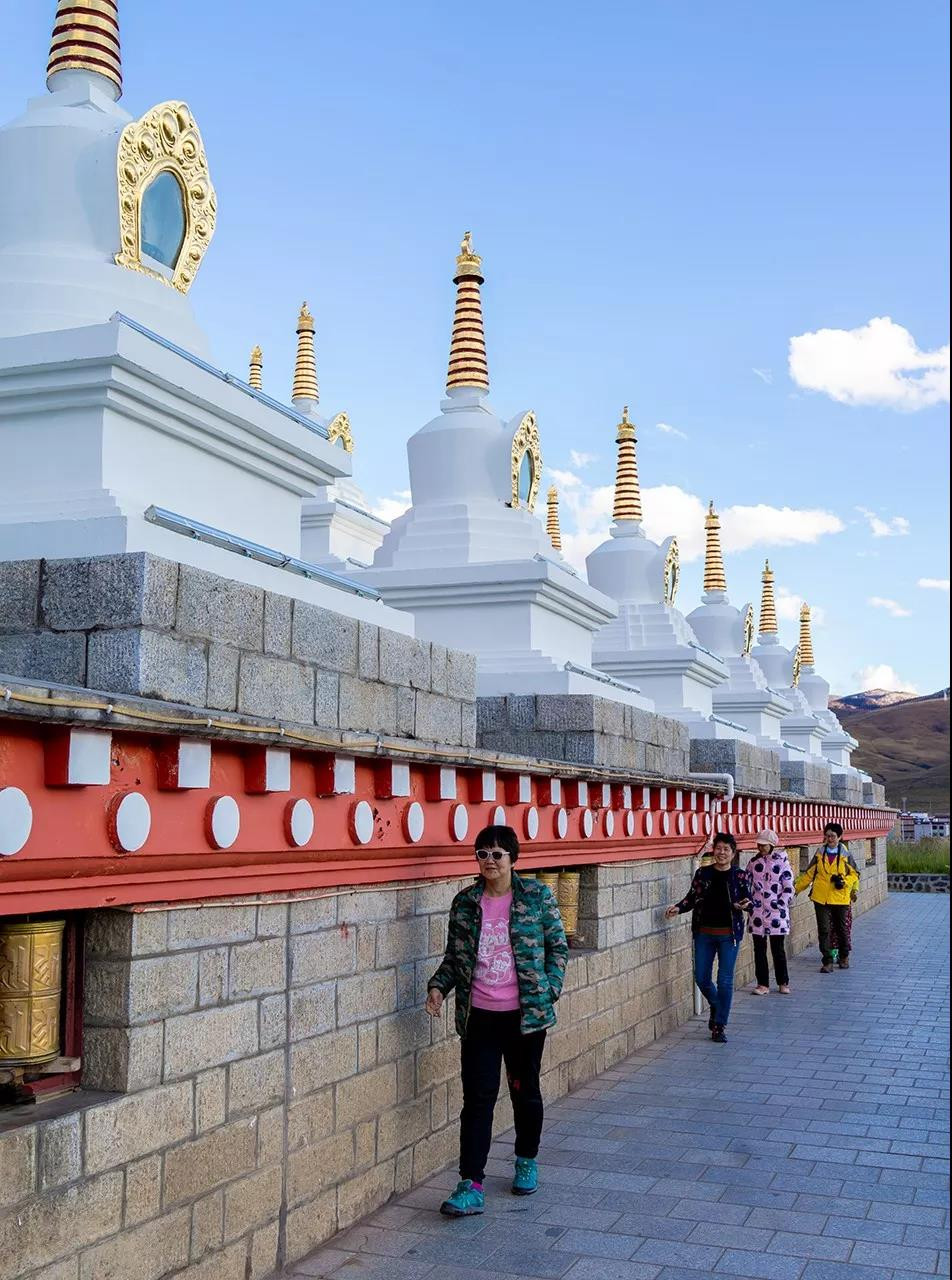 尊胜塔林,有着整个甘孜州里最大的一座白塔,是当年释迦牟尼涅槃之时,众多眷属祈求世尊法身长驻,佛陀便嘱修尊胜塔,并亲自加持开光,以此代表法身,可能在修建之时,也未曾想到如今,会有如此多的信众在这里虔诚转塔,以示诚心。