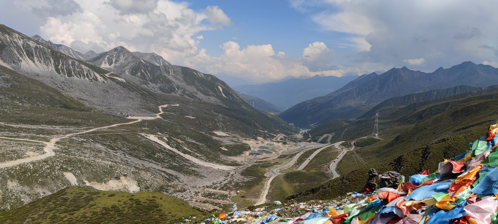 折多山俯瞰。从停车场边上白塔往上爬一小段坡,站在山坡上看四周的风景很好,这是进藏路上第一座海拔4000米以上的高山,先适应一下高原气候。