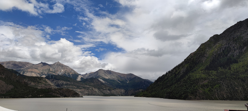 8月份的然乌湖湖水是土黄色的,有些浑浊,没有网上看到的碧绿色,也是另一番美丽景色。由于了解到鲁朗到林芝要封路一天,为了不耽误行程,我们决定放弃波密和鲁朗的停留,连夜翻越色季拉山,晚上赶到林芝市。可能大家都知道了这个消息,路上突然拥挤起来,来往车辆非常多,在经过几个由于施工而路况不好的地方时,出现短时拥堵,也算体验到了318线的堵车。这时SUV的通过性能就体现出来了,轿车走烂路非常难。经过一路奔波,披星戴月,险象环生,非常不易,有些后怕。告诫自己:今后长途旅行一定要遵循不赶夜路的真理。