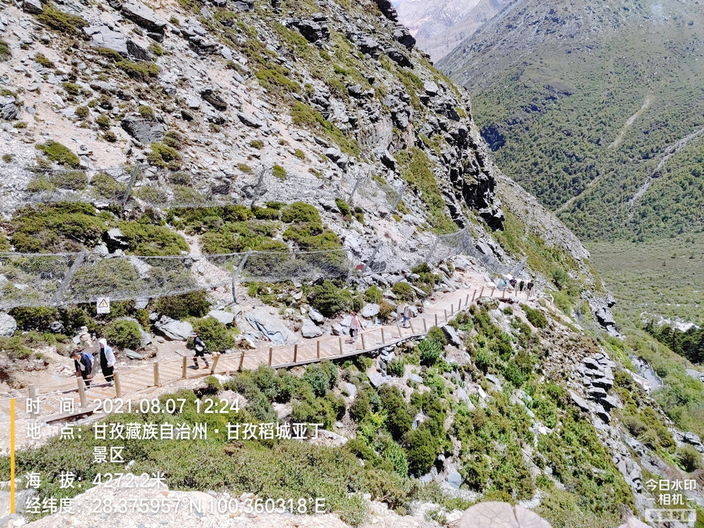 由于我昨天在海拔3900米的理塘县高反了,我爱人没有高反,我们决定先到海拔相对低一点的稻城亚丁适应一下高原气候,稻城亚丁景区也不用检测报告。从理塘县到达稻城县香格里拉镇已经是中午,吃完饭安排好住宿后,直接开车20分钟左右到达稻城亚丁景区,景区门票有效期2天。我们下午走的短线,游览了仙乃日、珍珠海(卓玛拉措)和冲古寺。晚上的香格里拉镇非常热闹,饭店、商场、药店、宾馆一应俱全,可以补给和休息。