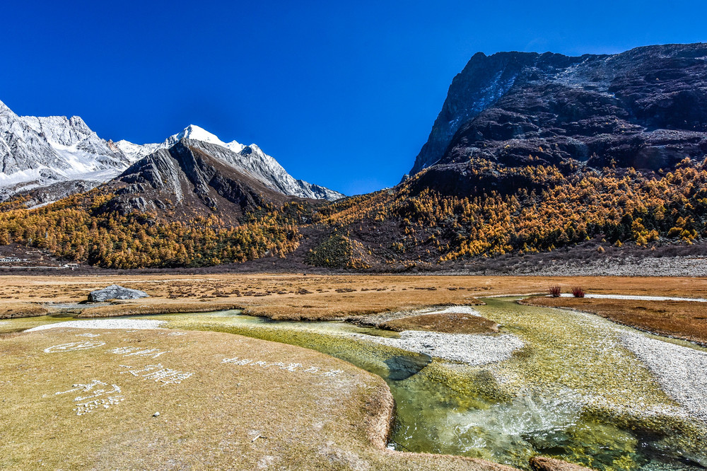 我们都很清楚的知道去呼伦贝尔大草原的最佳时节是夏季或秋季时期,因为夏季草绿而初秋则是浅黄色带绿,如果是深秋或者冬季看草原就会有一片枯萎而萧条的景象。不过在稻城亚丁的冲古寺所在的冲古草甸却超乎我们的想象。本应该是荒芜的高原草地,在雪山的搭配下却有着不一样的美,瞬间让这片高原草甸美成了画卷!