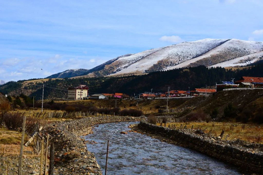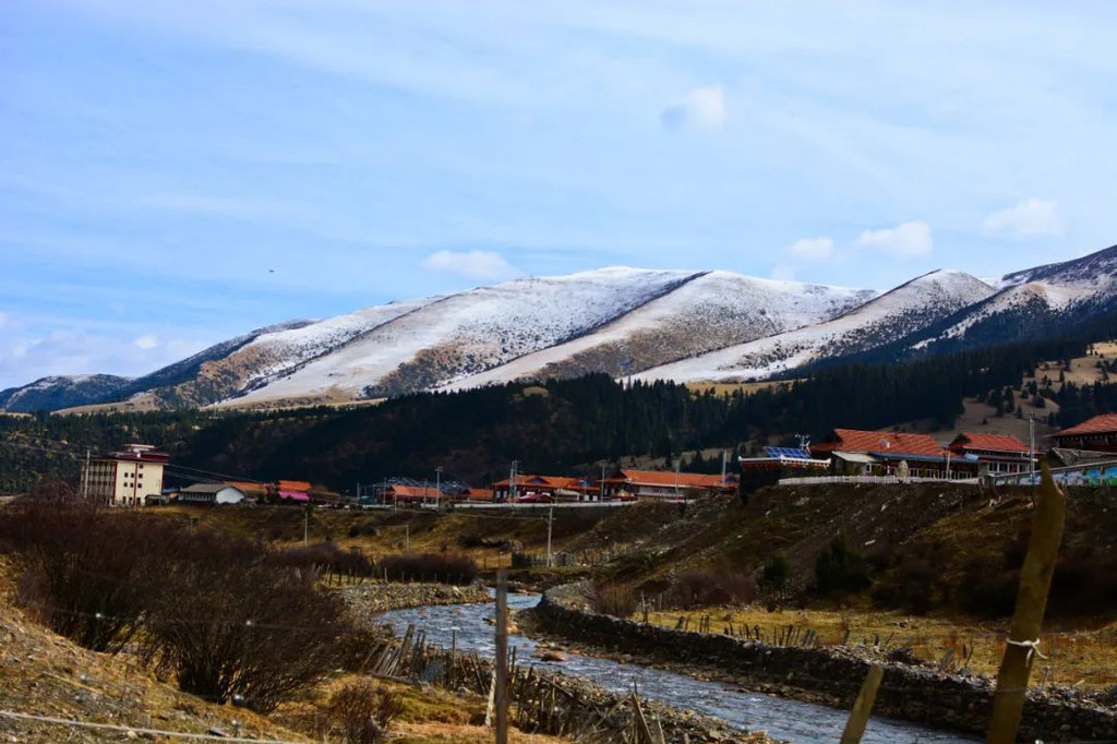 眼前是尚未到来的草长莺飞,远处是巍峨雪山耸立云端。