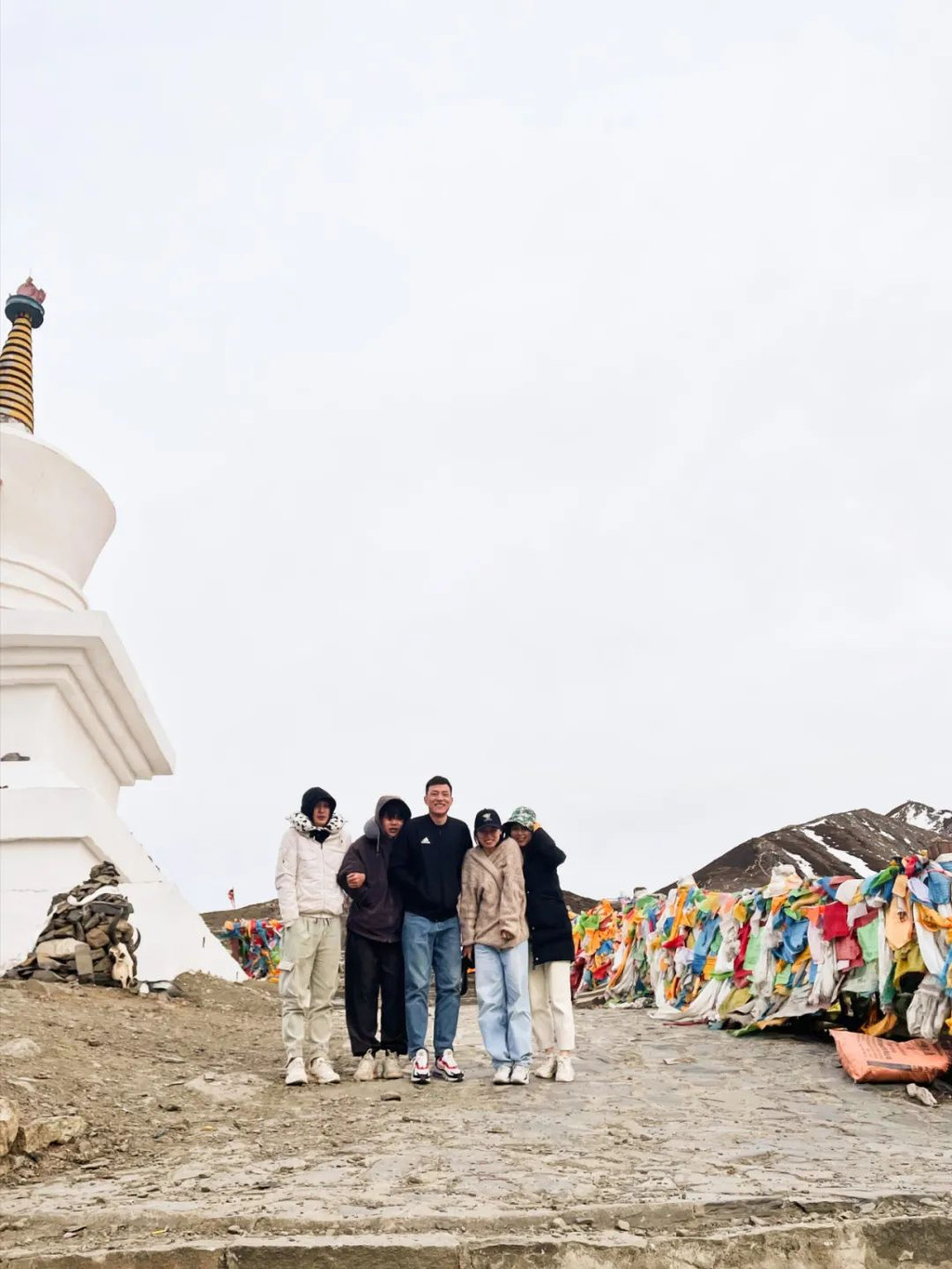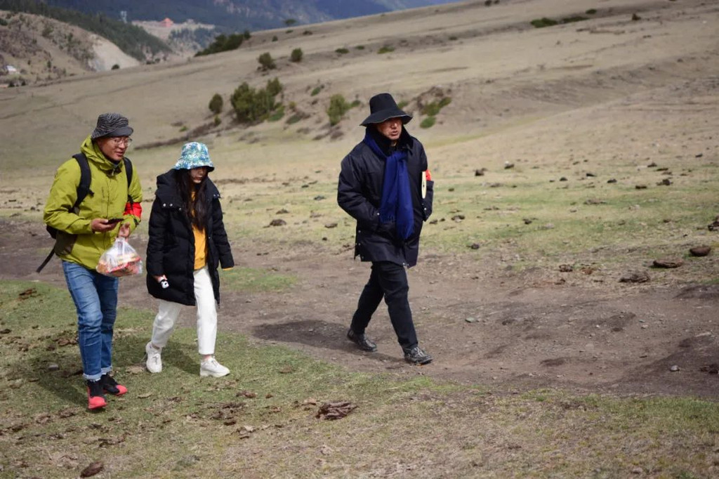 4月28日玉科镇,草原上的大风刮得人身子冷脸还疼,回康定的返程车上热得冒汗,5个人在折多山拍下那张团队合影时又瑟瑟发抖。