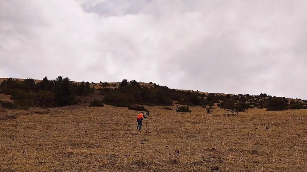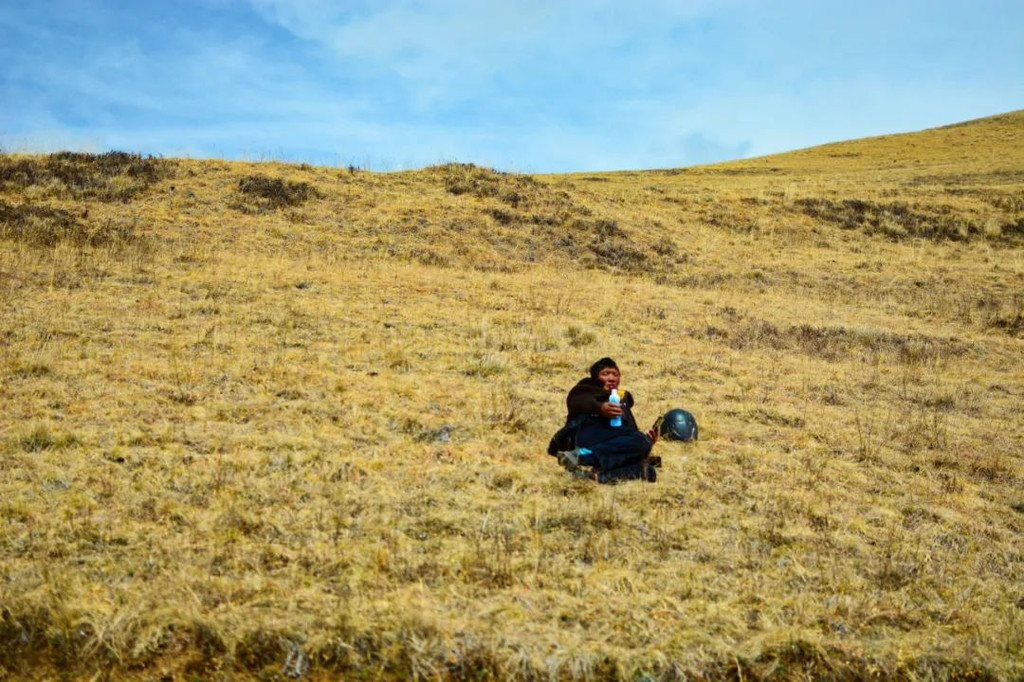 后来,我跟着当地巡护员徒步爬上山腰,整个人都处于非常兴奋的状态,一方面因为我本人喜欢户外,喜欢运动,另一方面体验藏民生活(工作)的机会非常难得。在半个多月前的拍摄策划时,本来不是我来担任此次vlog的主角,但是我向公司团队表示出,我想体验。后来阴差阳错,我真的硬着头皮上了。
