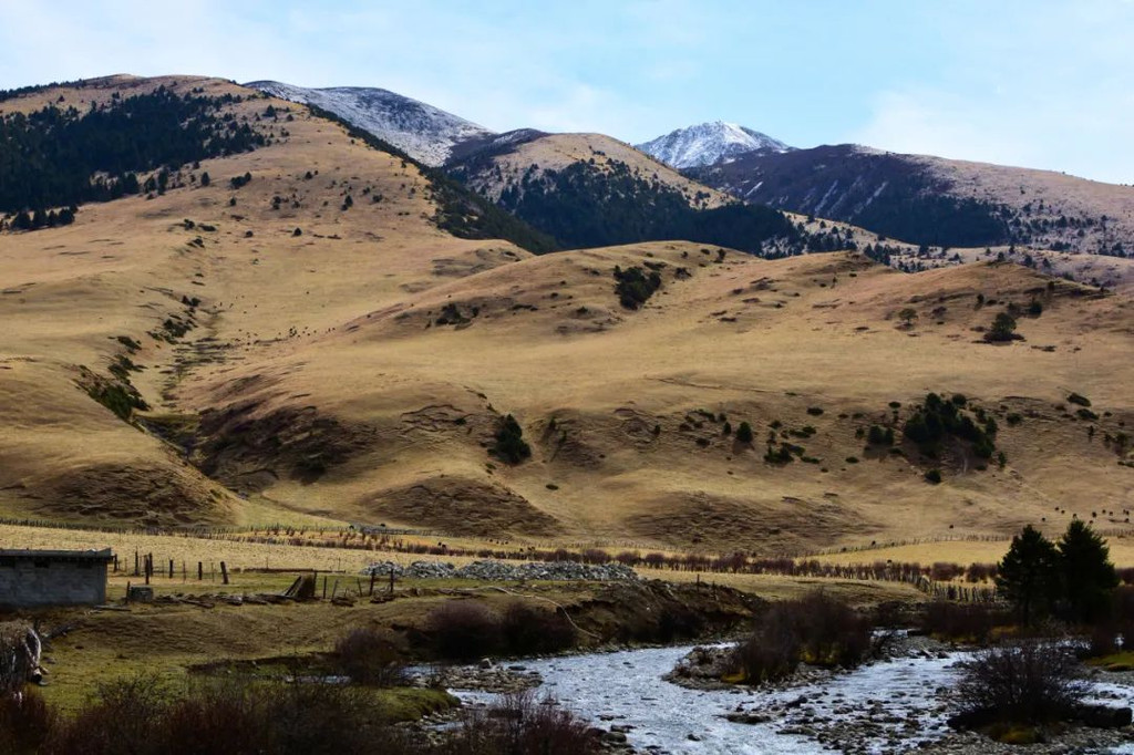 罗多尼玛大哥每天需要巡护的地方,就是我们所在的草原连接山坡的区域,以及山谷对面的那片山头。对面是一片高原森林,两座山的海拔均从3500米左右上升至山顶海拔4000米以上。