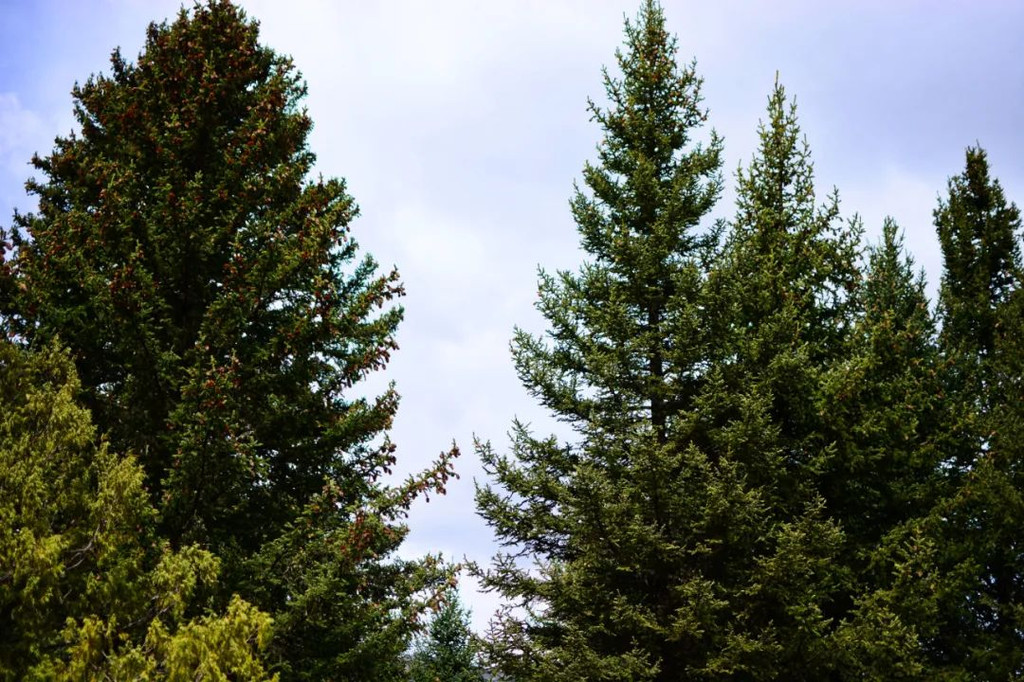 到山腰的地方,有一片高原森林,我们面前的这颗云杉大概有近千年的年纪,森林里的云杉和柏木动不动就是百年高龄。