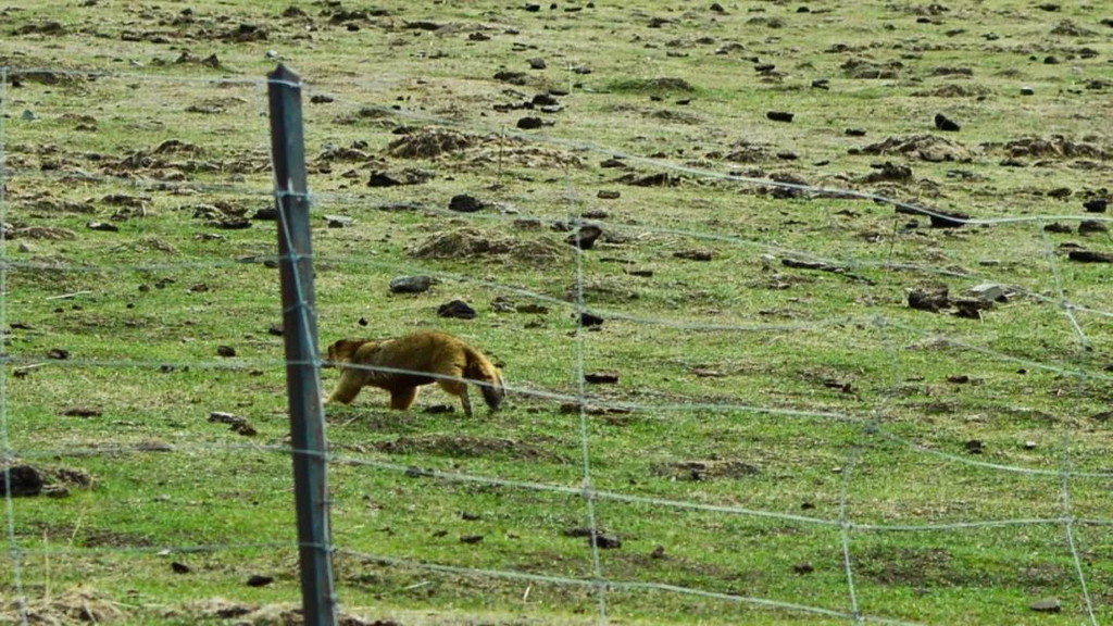 牛粪还被扒拉过,那些新鲜的土坑,是野猪的杰作,它们夜间出来刨坑,和土拨鼠抢同一种食物:人参果。