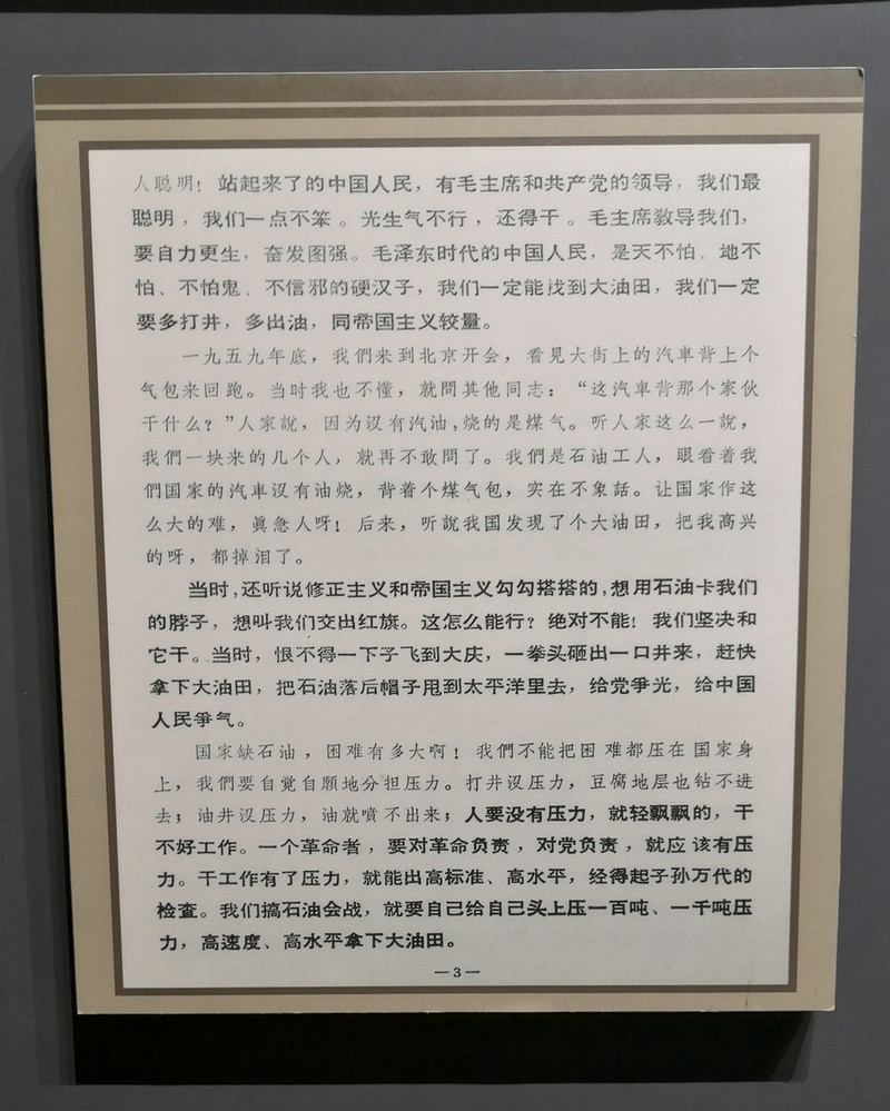 三个馆看下来对铁人王进喜纪念馆印象最深,科技馆也不错,而石油馆像一个石油科普展。铁人馆虽然都是曾经耳熟能详学习过的光荣历史,但60年之后,依然被感动到。这就是我们的那个时代的中国工人!