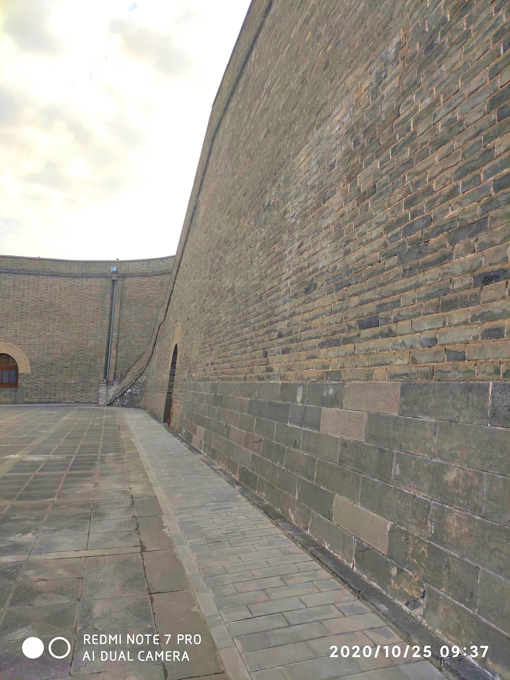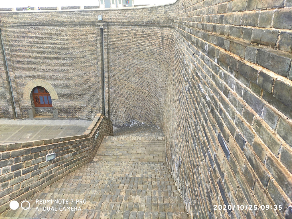 我踏着青灰色石板排列起来的台阶,缓步而上,脚下回荡的足音,有着悠长的余韵,走上高高的城墙,首先映入眼帘的是黑色的炮台,散发着凝重的古老气息。