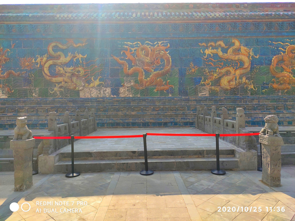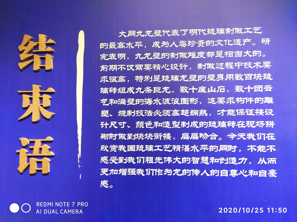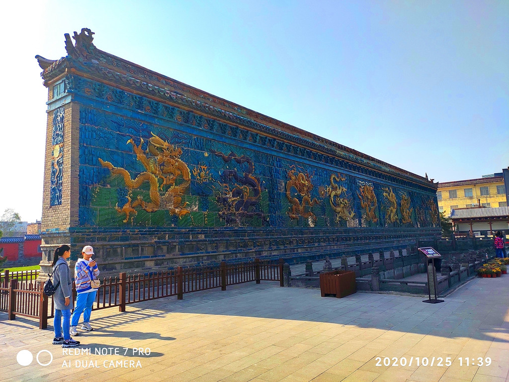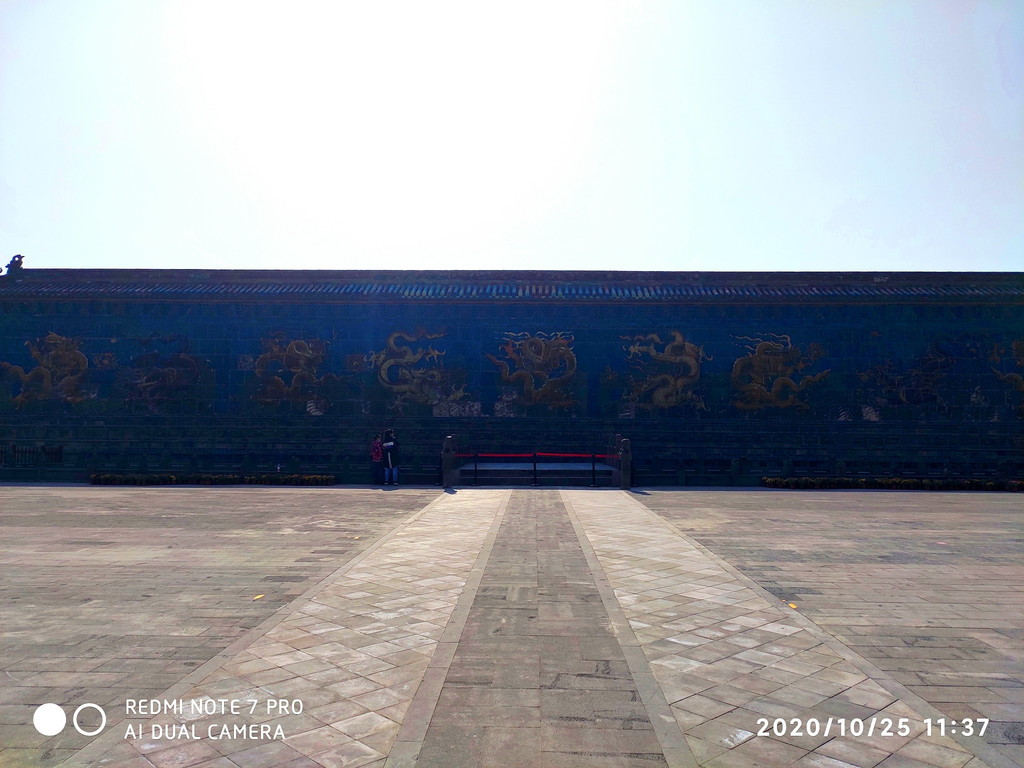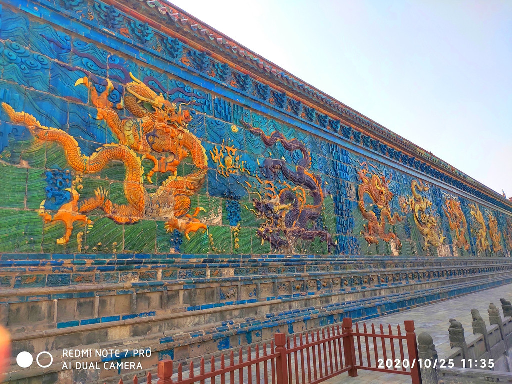来大同,九龙壁成为很多人打卡的地点之一。因为这处九龙壁是中国九龙壁之首。整个九龙壁是由琉璃构件拼砌而成,金碧辉煌,极富艺术魅力。九条龙姿态不一,腾跃于山海之间,气势非凡。中心正龙是一条坐龙,为正黄色,象征着皇权的中心地位,其他的龙均以此为轴,形态飘逸,栩栩如生。