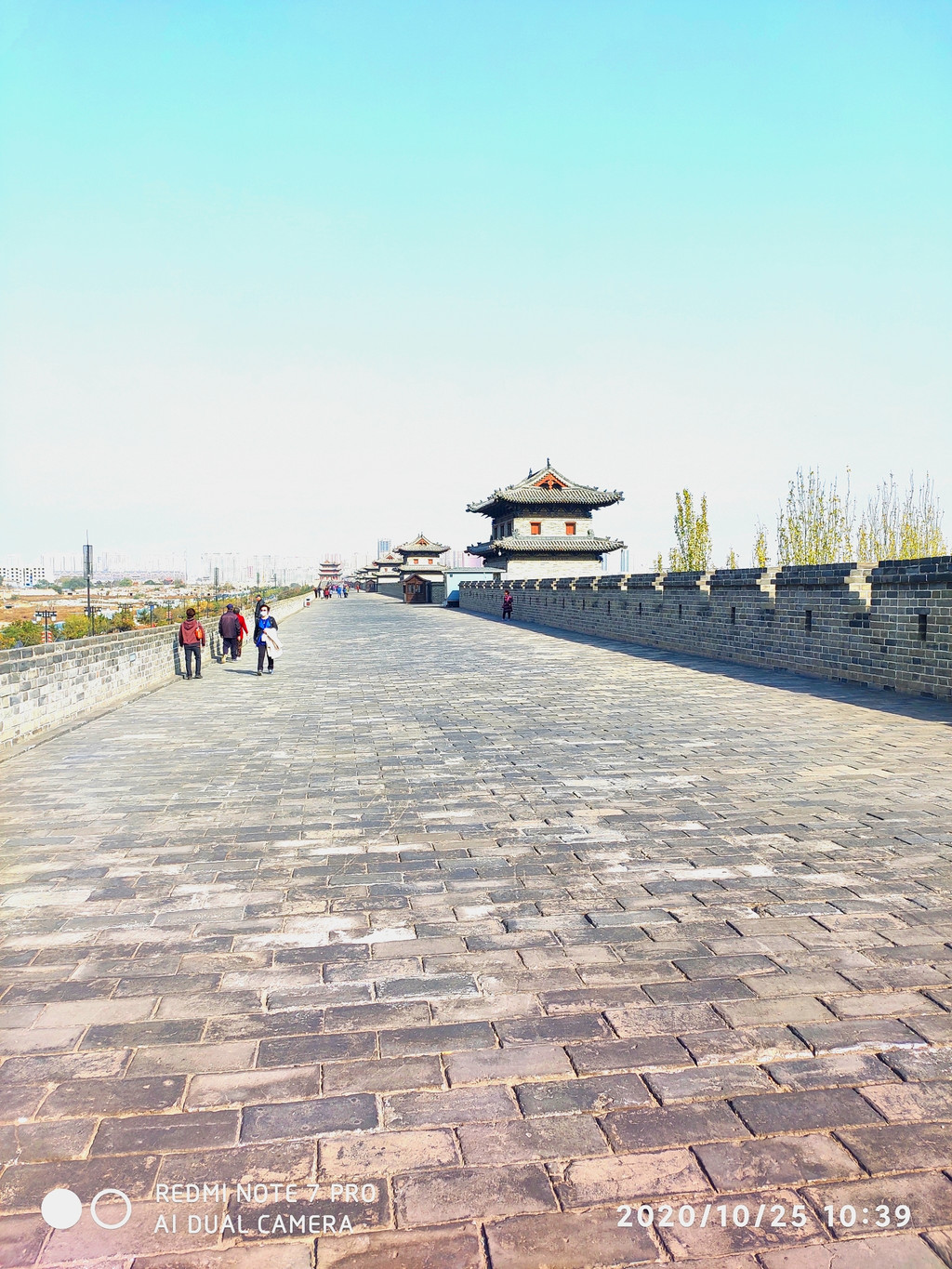 站在高高的城墙眺望,并没有半城烟沙,兵临城下,也没有置身楼阙,乘风惆怅,只有秋风拂动衣衫,白云涤荡心怀。