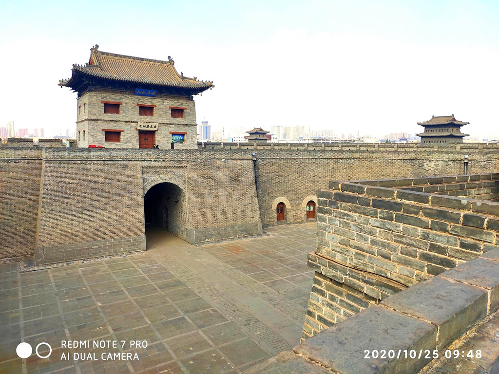 现存大同城墙为明洪武五年(1372年),大将军徐达奉命依辽、金、元旧城基础增筑新城,略呈方形,东西长1.8公里,南北长1.82公里,周长7.24公里,面积3.28平方公里。