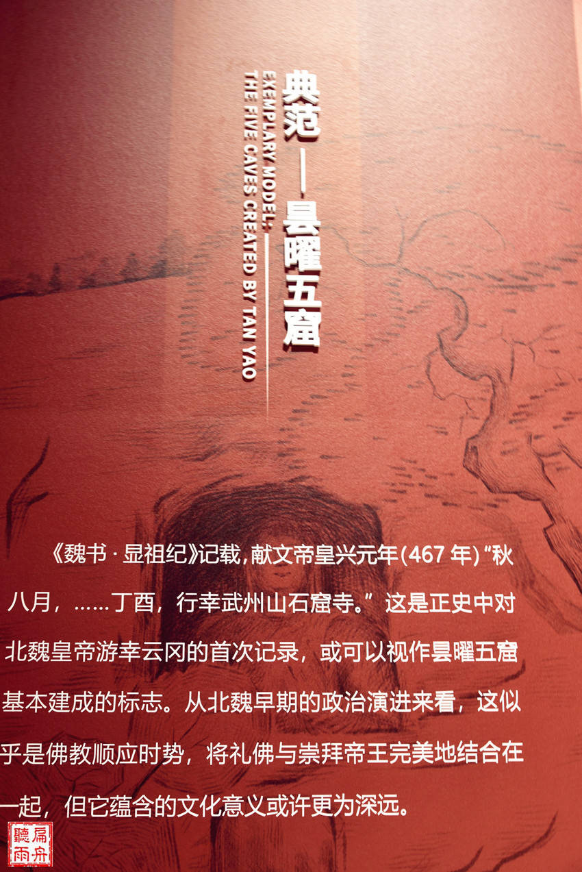 公元460年,另一位名叫昙曜的高僧继续弘扬延续法果的思想,投皇权所好,在平城(大同)西侧的武州山上,为北魏最初的五位皇帝开凿了5座大型石窟,拉开了云冈石窟大规模兴建的帷幕,书写了石头上的历史与艺术。
