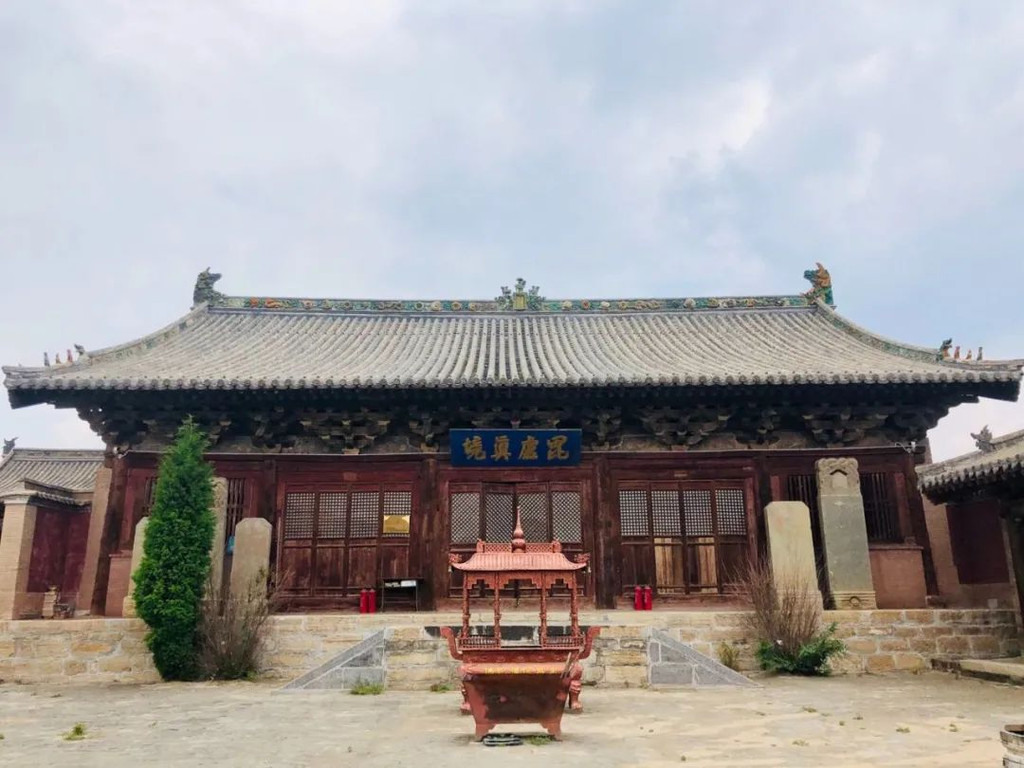 掩映在古树之中的东大殿寺院右边原大殿已损毁。左边,一座俊逸的丹朱色大殿夺入眼球。它飞檐平缓,两端微翘,正门大开,毫无保留地站在你面前。它是文殊殿,竟是一座金代木建!