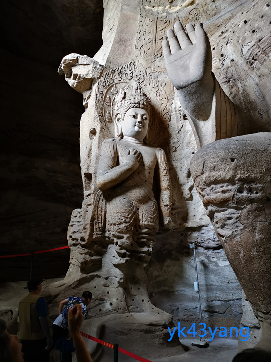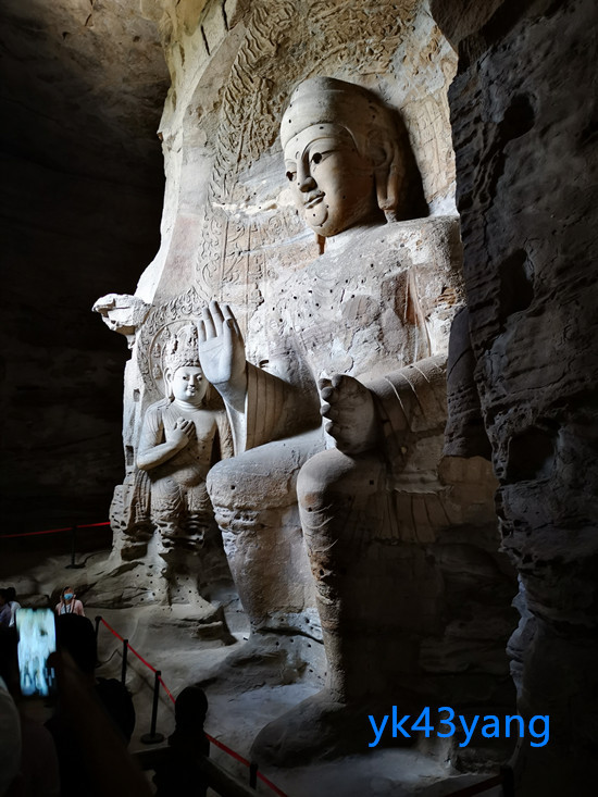 上次来时,云岗第五,六两窟内也禁止拍照。虽然游人拥挤,尽有偷拍相机不停地闪光。但里面警卫森严,看到以后,轻者训斥,重者没收相机。所以只拍了两张照片。
