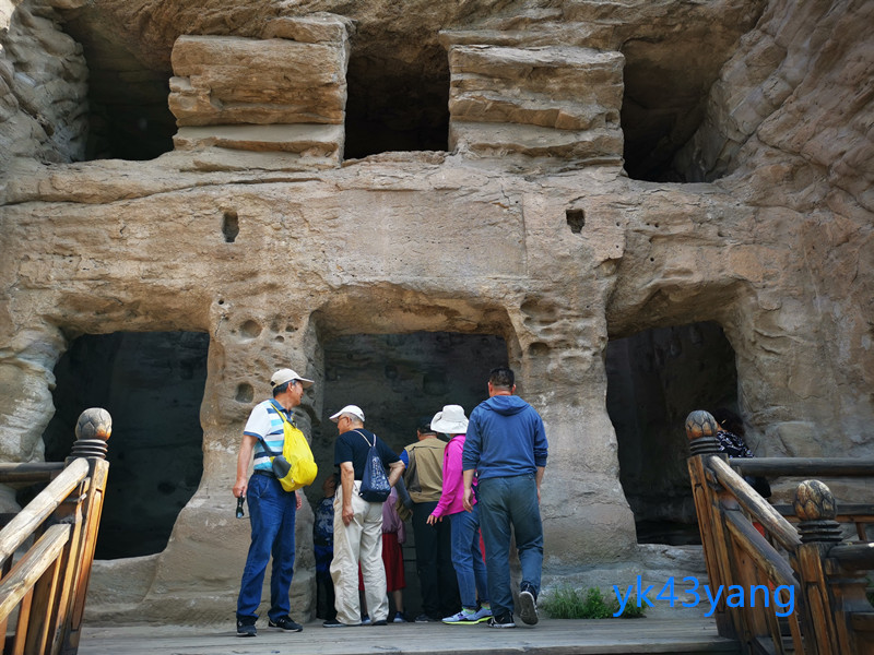 穿过大门,来到了武州山布满了石窟的南崖前。